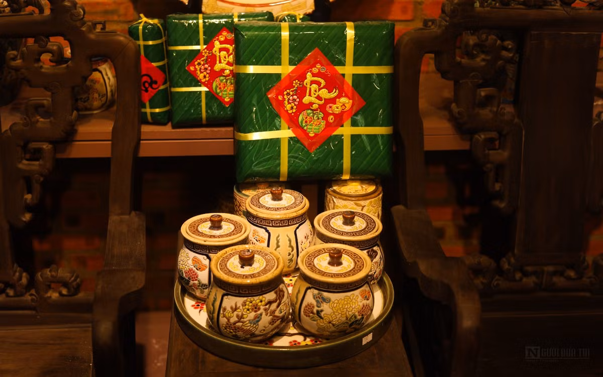 Đôn bách hoa và bộ ấm trà hoa lan.