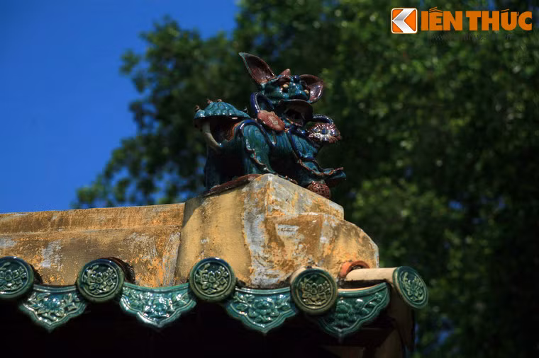 Trên nóc đình có gắn tượng hình người, hình kỳ lân, hình cá hóa rồng...