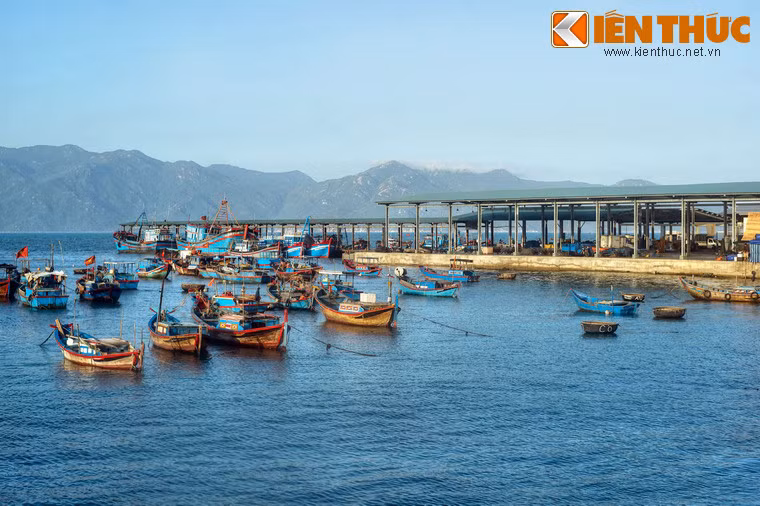 Hình ảnh những con thuyền đánh cá được sơn màu sắc tươi tắn neo đậu san sát là nét đặc trưng của cuộc sống bình yên bên bờ vịnh.