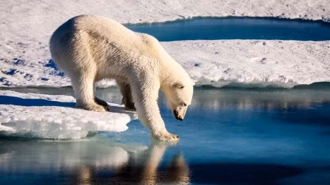 Hiện quần thể gấu Bắc cực đang bị ảnh hưởng nặng nề do hiện tượng nóng lên toàn cầu. Vào năm 2008, gấu Bắc cực đã được liệt vào danh sách những loài nguy cấp, bị đe dọa tuyệt chủng do biến đổi khí hậu. Nếu như con người không thay đổi và có ý thức giữ gìn, bảo vệ tự nhiên, bảo vệ gấu Bắc cực hơn, rất có thể trong tương lai gần, những con gấu Bắc cực chỉ còn trên sách vở.