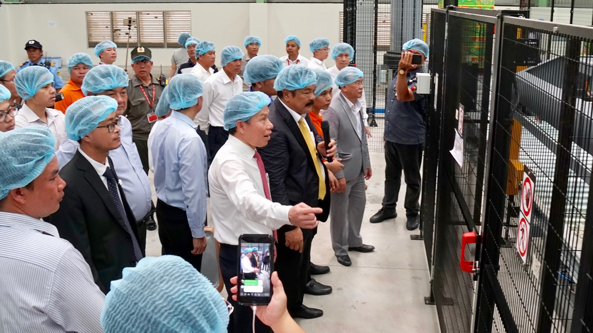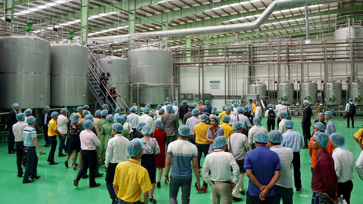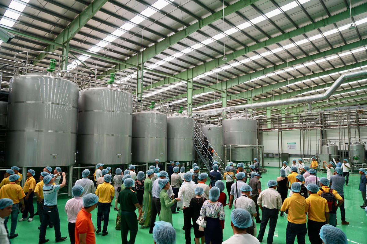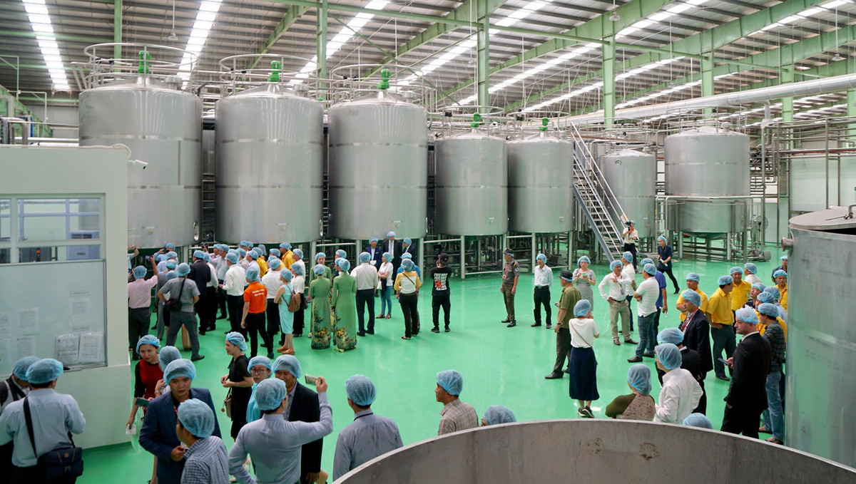 Các khách mời tham quan hệ thống dây chuyền công nghệ khép kín vô trùng Aseptic tại nhà máy Number One Hậu Giang.
