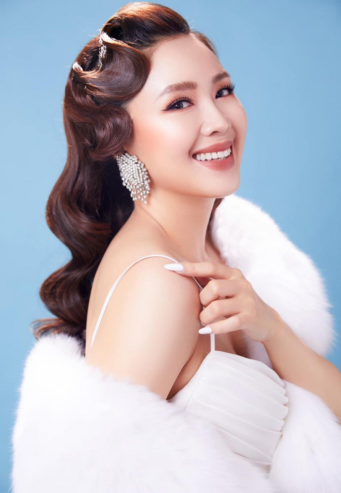 Hồng Diễm đẹp mặn mà với tạo hình quý cô phong cách cổ điển.