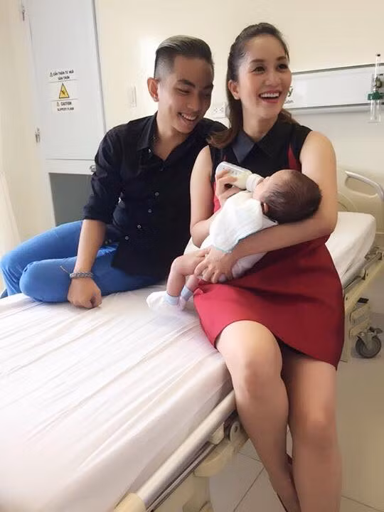 | Phan Hiển chăm sóc vợ khi Khánh Thi sinh con đầu lòng. |