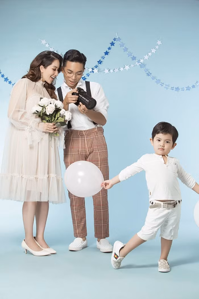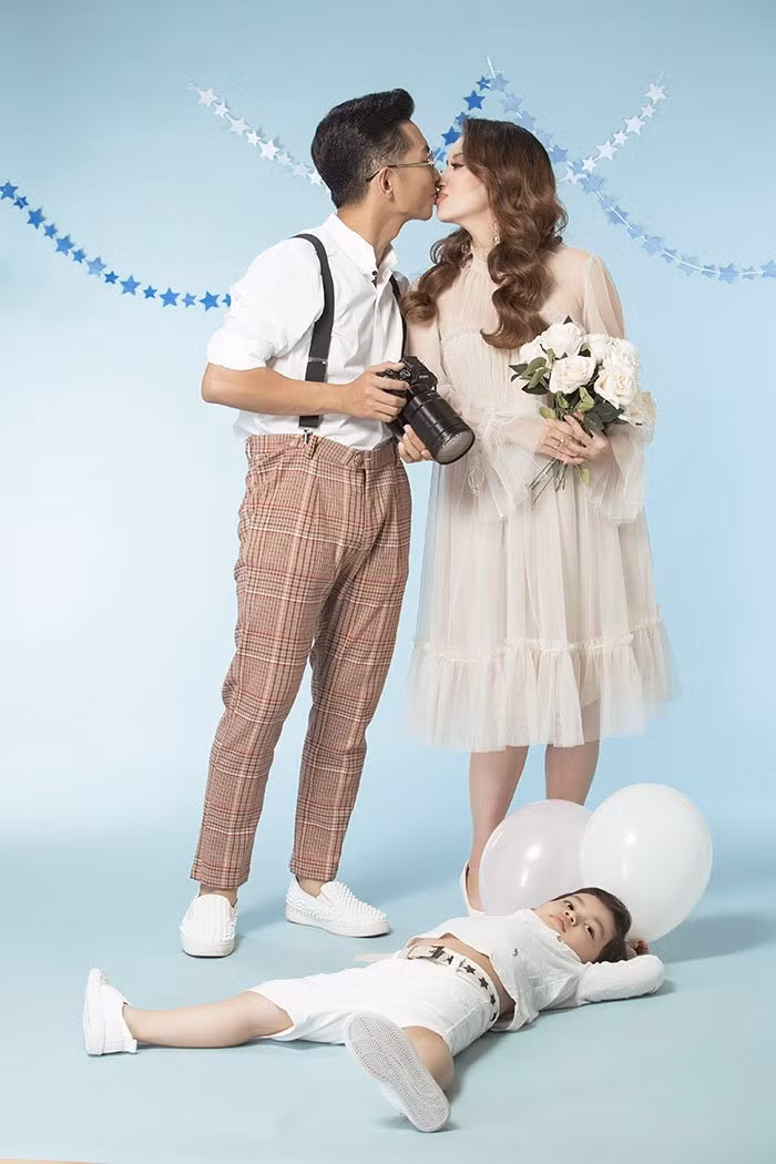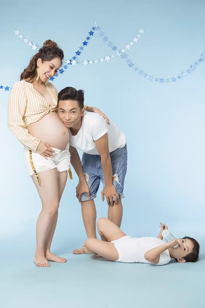 Hiện tại, Khánh Thi đang mang bầu ở tháng thứ 8, cô cùng chồng con thực hiện một bộ ảnh đặc biệt ghi dấu cột mốc đáng nhớ này.