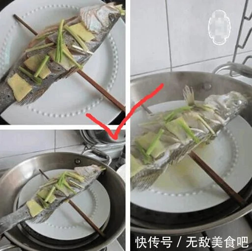 Bước 2: Nhiều người sẽ cho cá trực tiếp lên đĩa để hấp, nhưng làm như vậy là sai lầm vì nước sẽ chảy vào khiến cá bị nát. Cách làm đúng là đặt cá lên 1 chiếc đũa rồi mới cho lên đĩa.