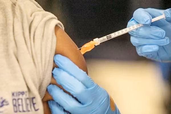 Nhân viên y tế tiêm phòng cho sinh viên tại New Orleans (Mỹ)