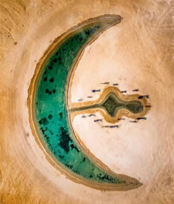 Hồ nước hình trăng khuyết lọt thỏm giữa sa mạc cằn cỗi ảnh 6