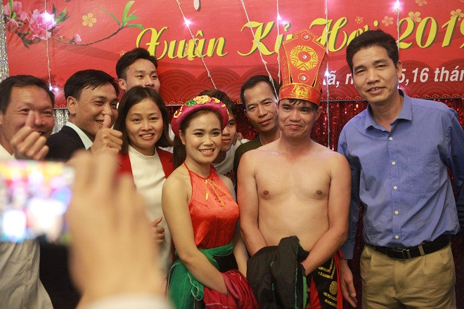Năm 2018, anh Chiến và chị Huyền “tình phộc” trượt 1 lần nhưng năm 2019, anh chị không để chuyện đó lặp lại. Cả 3 lần, anh chị đều thực hiện chuẩn xác. Sau nghi lễ, mọi người vui vẻ chụp ảnh kỷ niệm cùng vợ chồng anh chị.
