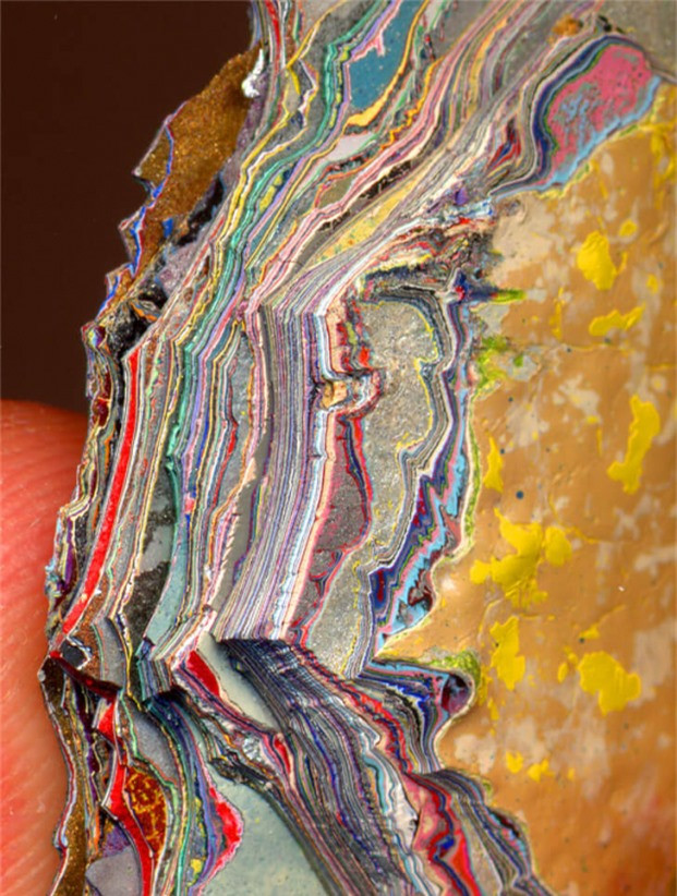 9.Một phần vỡ ra của bức tường đầy hình vẽ graffiti
