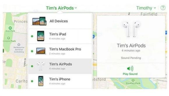 Đăng nhập và nhấp vào Find iPhone > chọn All Devices > chọn AirPods