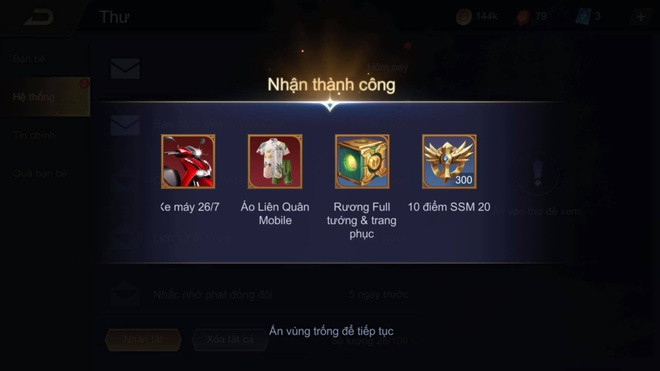Đính kèm thư cáo lỗi là phần quà 1.000 mảnh ngọc, gói thẻ thử tướng, Mảnh Kiếm Specium và Sao Hộ Mệnh đấu hạng được gửi đến người chơi.