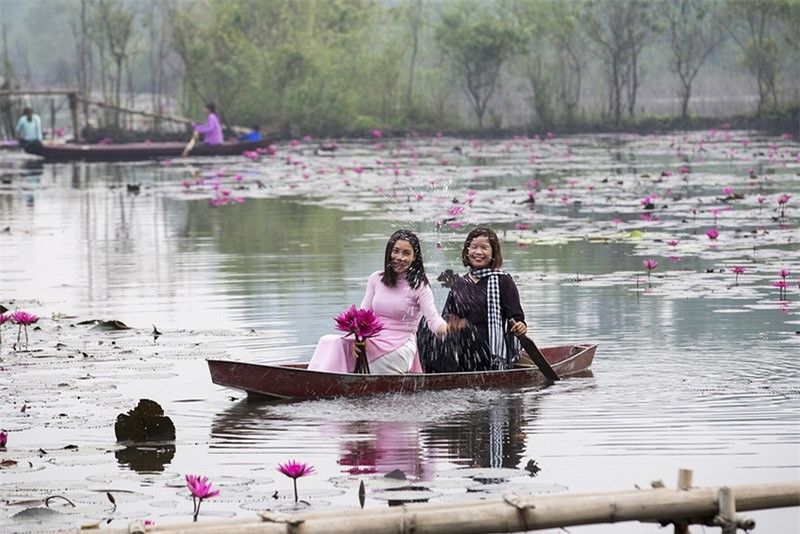Ngất ngây với sắc tím mùa hoa súng chùa Hương