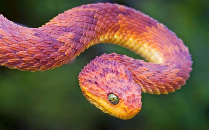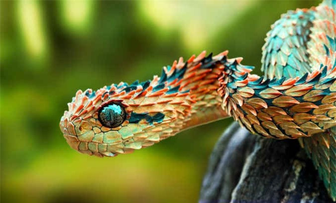 Rắn Atheris hispida, thường được gọi là rắn vảy sừng Bush Viper hay rắn có lông, sống trong khu rừng Takamanda, Cameroon. Không chỉ sở hữu lớp vảy kỳ lạ, loài rắn này còn có khả năng thay đổi màu sắc cơ thể để hòa lẫn với môi trường xung quanh khi chúng trốn tránh kẻ thù hay đánh lừa con mồi.