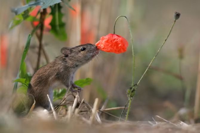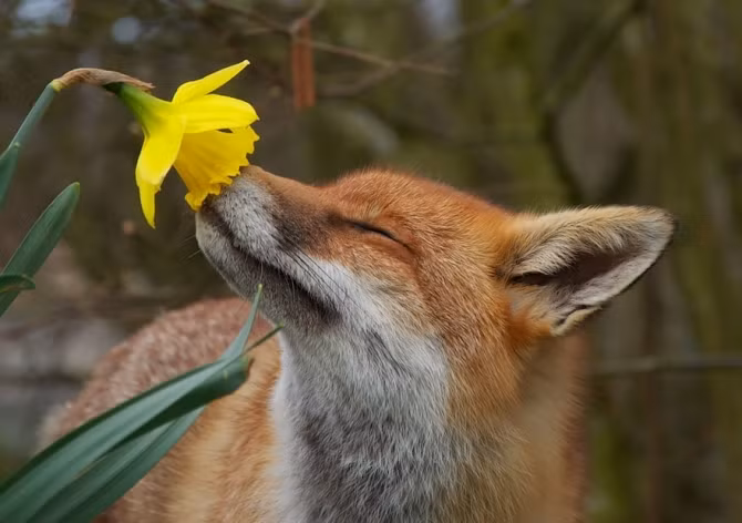 Khoảnh khắc đẹp khi động vật bị hoa quyến rũ