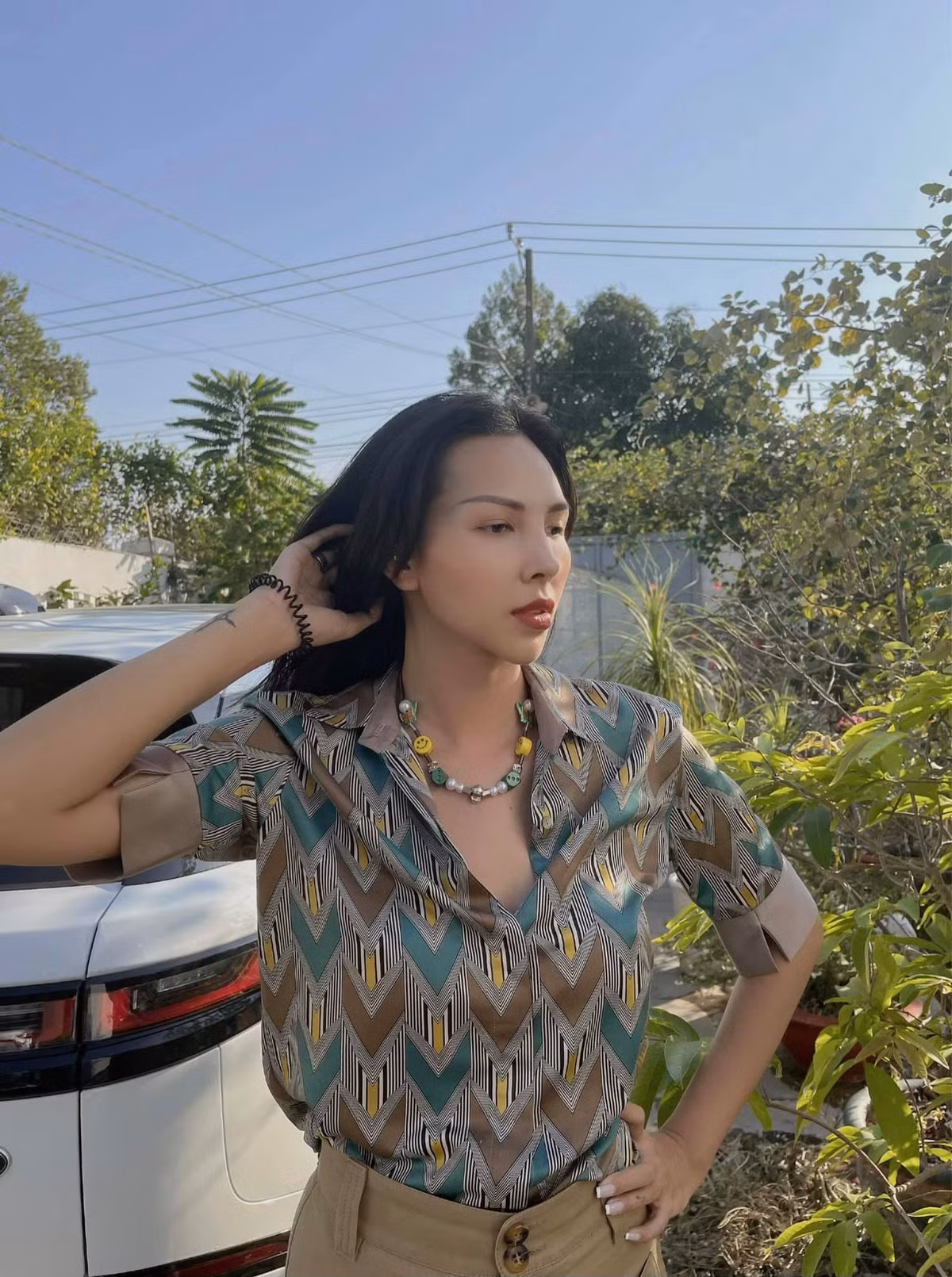 Người đẹp Cẩm Đan tận hưởng ly trà sữa ngày cuối tuần.