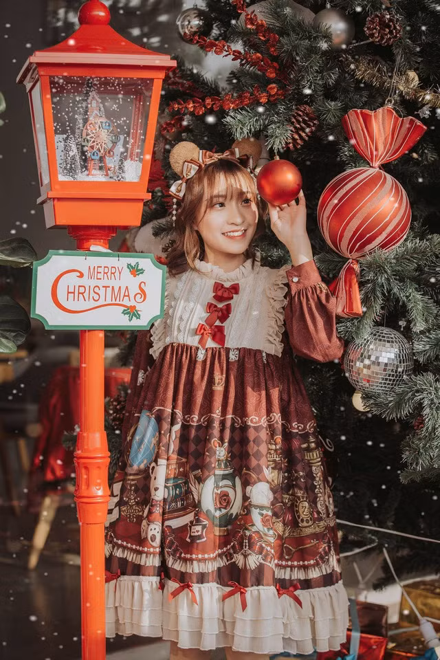 Trong bộ ảnh Giáng sinh, cũng là bộ ảnh kỉ niệm tuổi 19 của mình, nữ sinh xứ Nghệ lựa chọn hình ảnh "Lolita" dễ thương, ngọt ngào đúng với phong cách của mình.