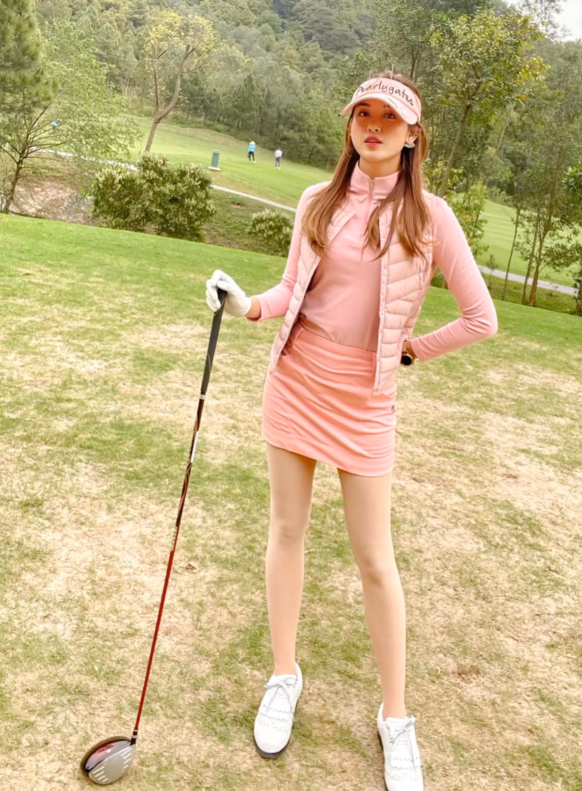 Bên cạnh những lời khen cho kỹ năng chơi golf, người đẹp 9x còn nhận được lời tán dương vì phong cách thời trang cũng như vóc dáng của cô nàng.