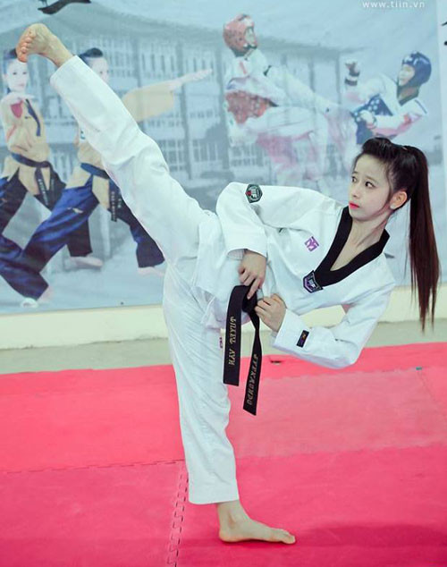 Nhờ làm quen với Taekwondo từ khi 7 tuổi, nên Tuyết Vân có thân hình vỗ cùng dẻo dai.