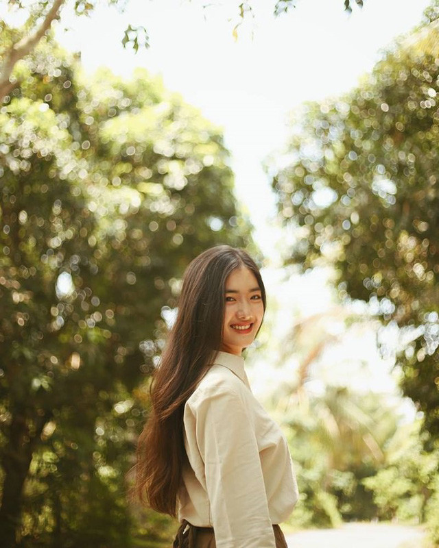 Mỹ Kiều chia sẻ: "Dạo gần đây em có nhận được khá nhiều lời mời kết bạn và tin nhắn làm quen. Em cũng thường được các bạn nói là góc nghiêng sẽ tôn lên khuôn mặt mình, nên cũng thành thói quen chụp ảnh như vậy luôn".