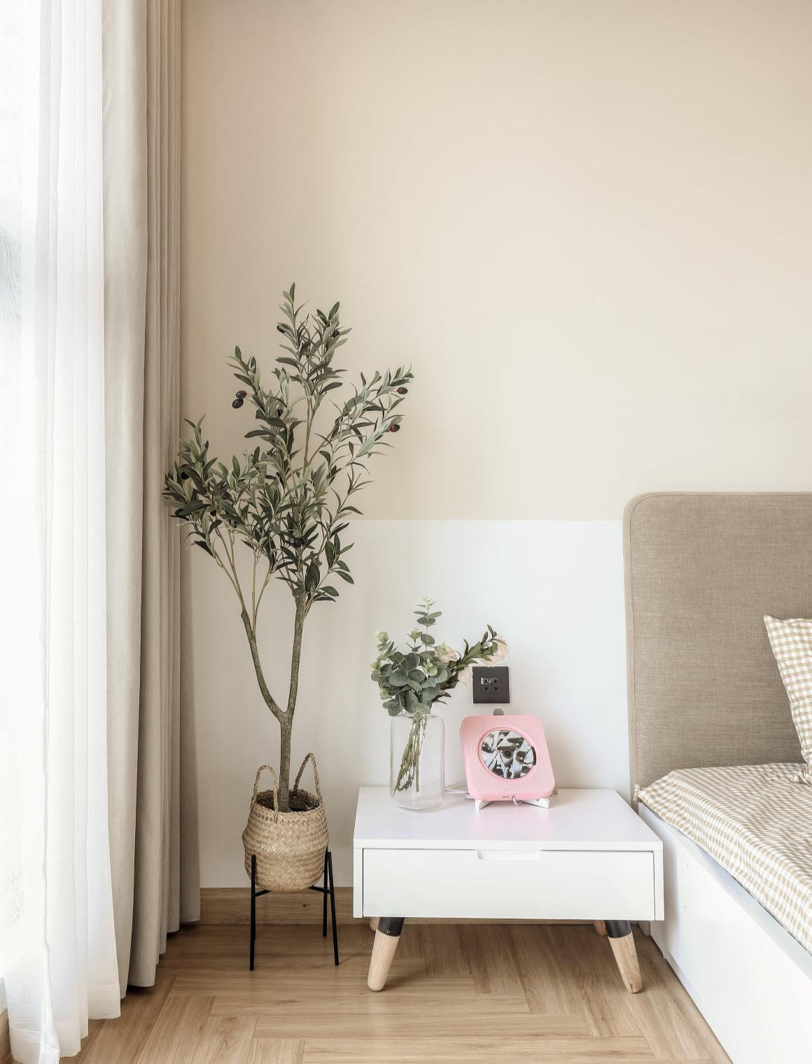 Phòng ngủ đơn giản dùng màu hồng sắc độ nhẹ nhàng làm điểm nhấn, thể hiện gu thẩm mỹ tinh tế của nữ gia chủ.