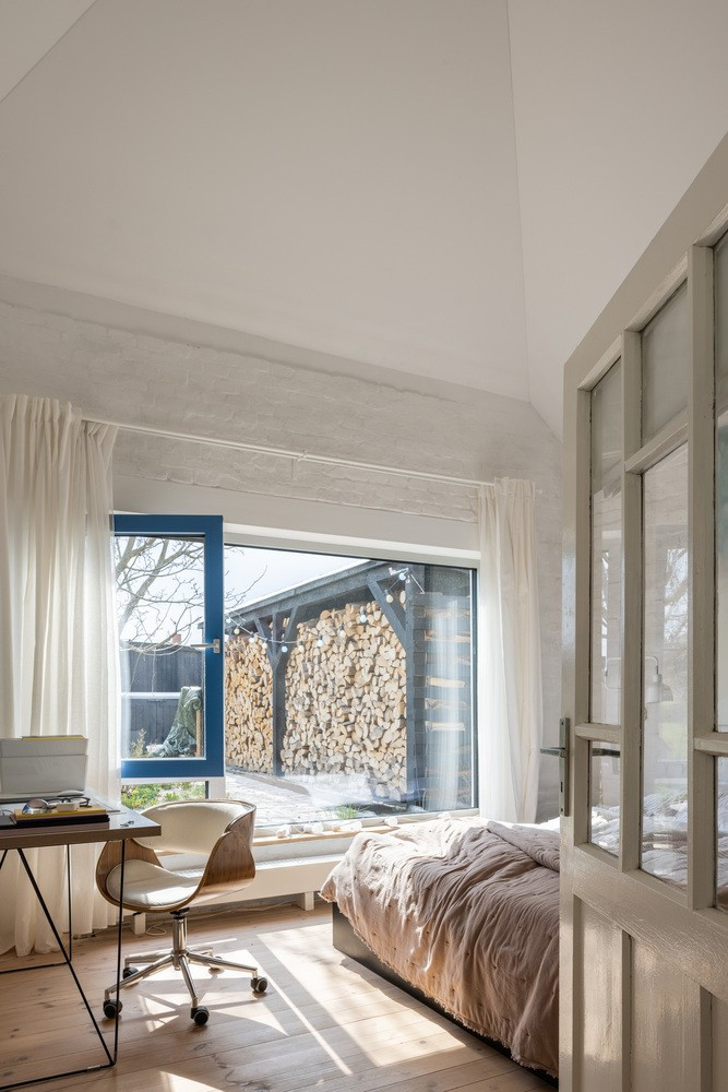 Không gian phòng ngủ luôn ngập tràn ánh sáng tự nhiên nhờ chiếc cửa sổ rộng, kết hợp với rèm màu trắng.