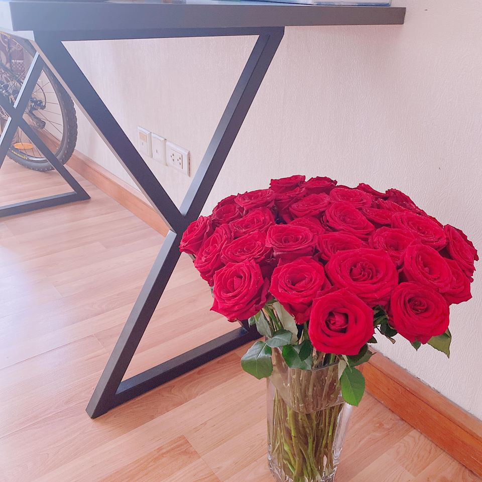 Mai Phương Thúy dường như có niềm yêu thích với hoa hồng. Cô thường xuyên cắm hoa hồng để căn hộ có thêm màu sắc.