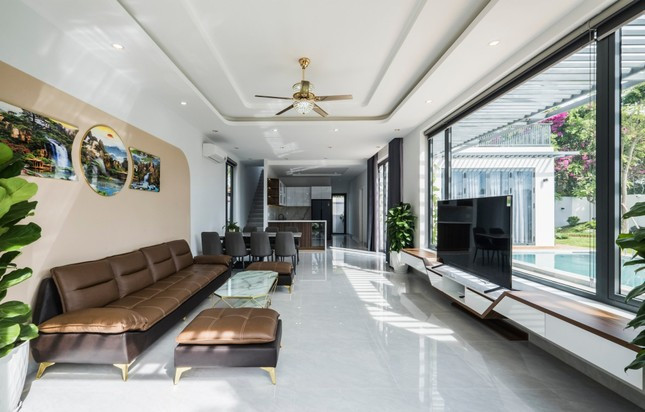 Ngồi ngay trong nhà cũng có thể bắt trọn không gian xanh, thoáng đãng nhờ các hệ cửa kính lớn khắp các mặt.