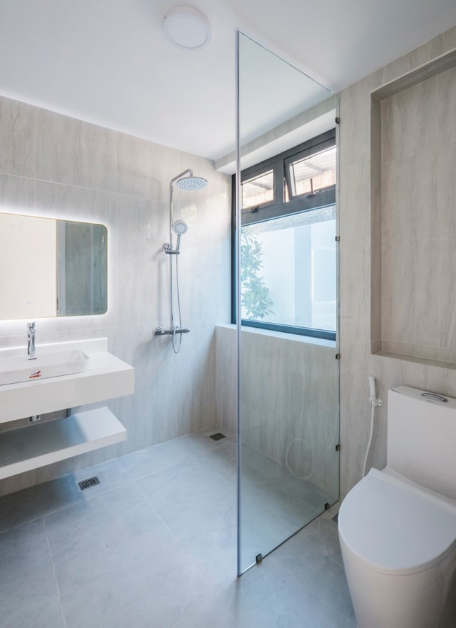 Khu bồn tắm có views nhìn ra sân vườn là điểm nhấn, tại đây gia chủ sẽ có những giây phút riêng tư và thư giãn.