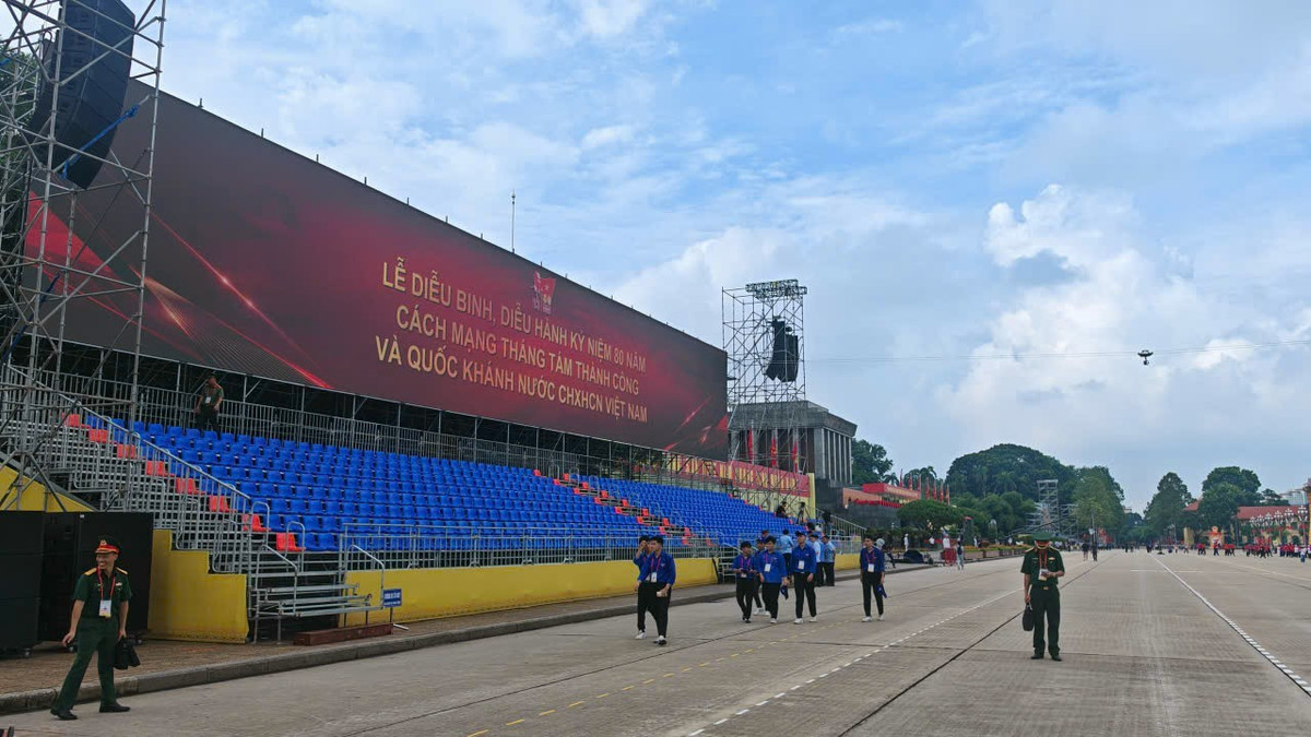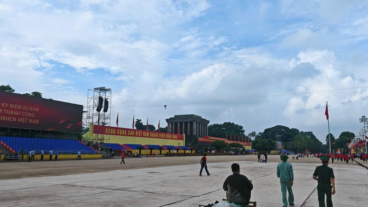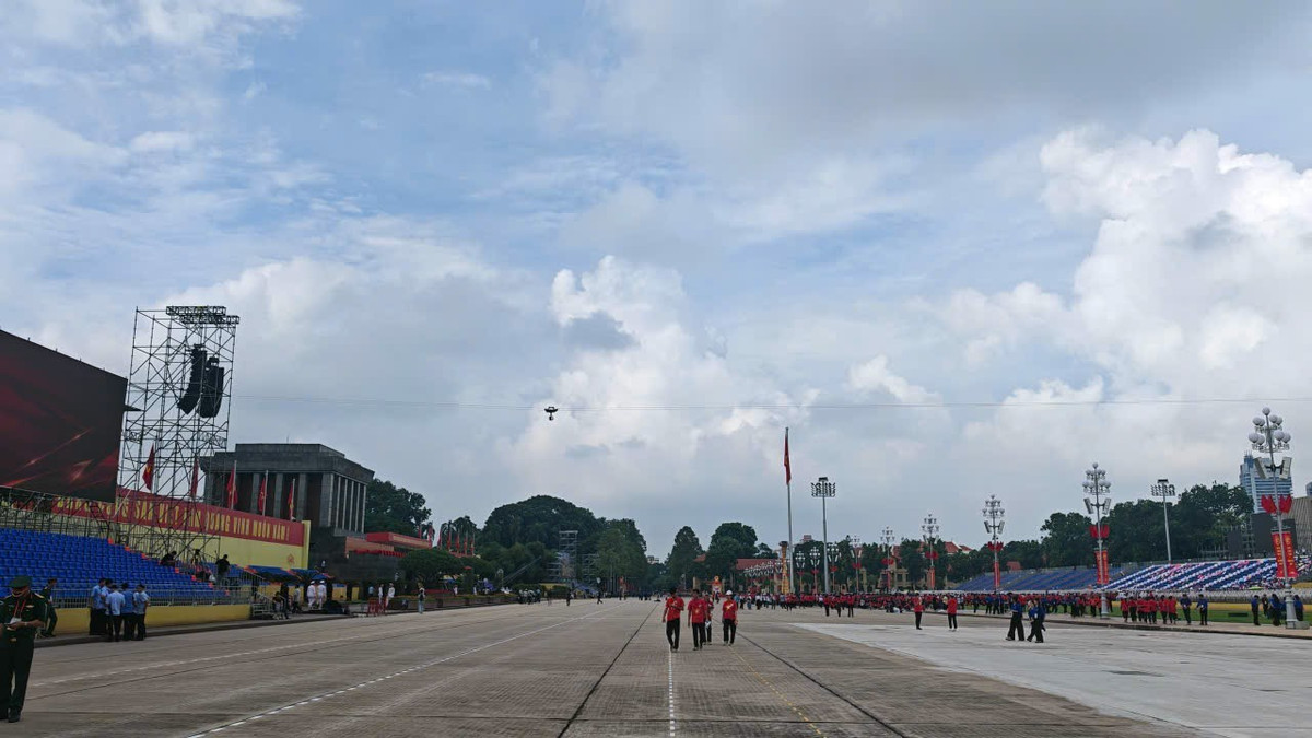 Cả quảng trường Ba Đình bừng lên sức sống, vừa long trọng vừa phấn khởi, sẵn sàng cho buổi sơ duyệt diễu binh, diễu hành quan trọng của Thủ đô.