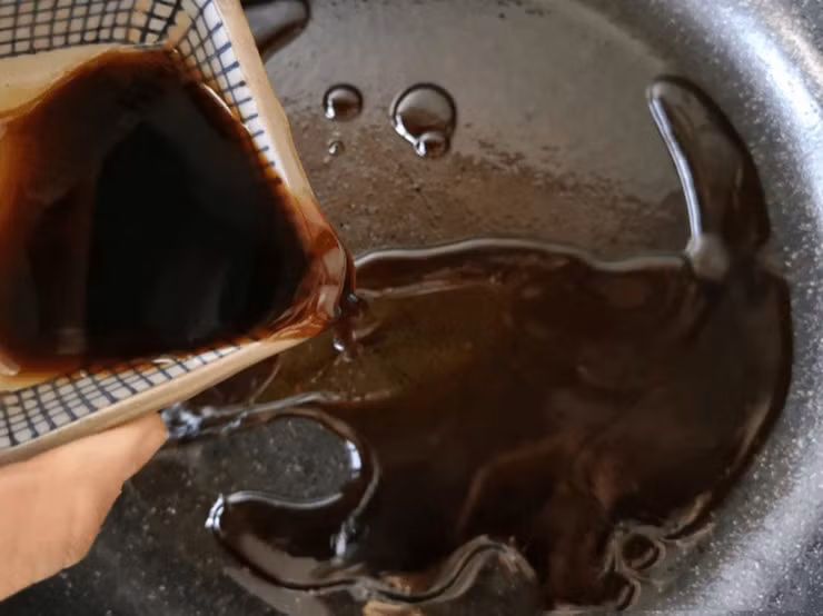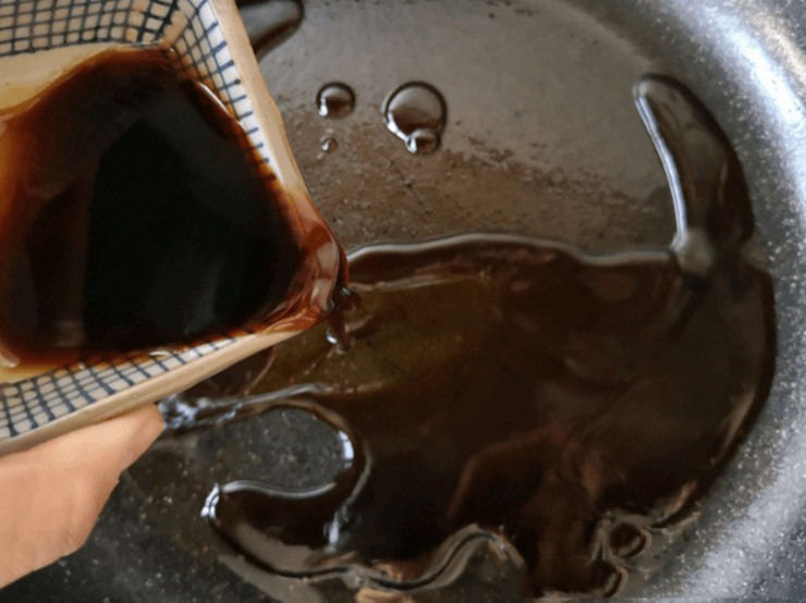 Làm nước sốt: 2 thìa xì dầu, 1 thìa dầu hào, 1 thìa đường và một ít nước luộc cải thảo vào bát, khuấy đều rồi để riêng. Bắt một cái nồi khác, đổ bát nước sốt vào, đun sôi, tắt bếp, rưới lên cải ngồng.