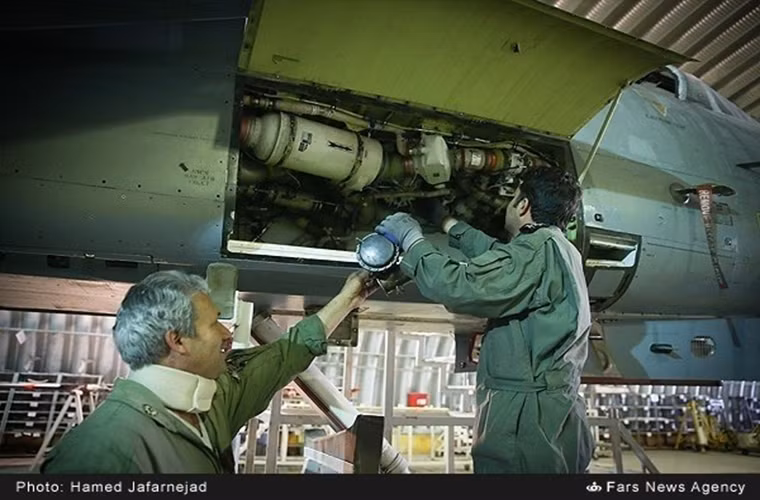 Tuy nhiên điều may mắn cho Iran là những chiếc F-14A của nước này được trang bị mẫu động cơ phản lực TF30-P-414A cải tiến thay vì phiên bản động cơ TF-30 ban đầu vốn bị đánh giá hoạt động kém hiệu quả. Nguồn ảnh: Fars News
