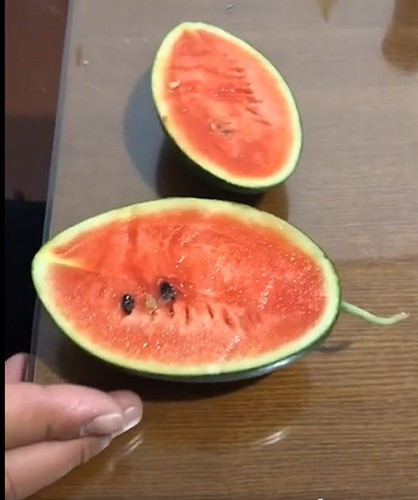 Không trồng vẫn có dưa hấu ăn, cô nàng bổ ra mà bất ngờ