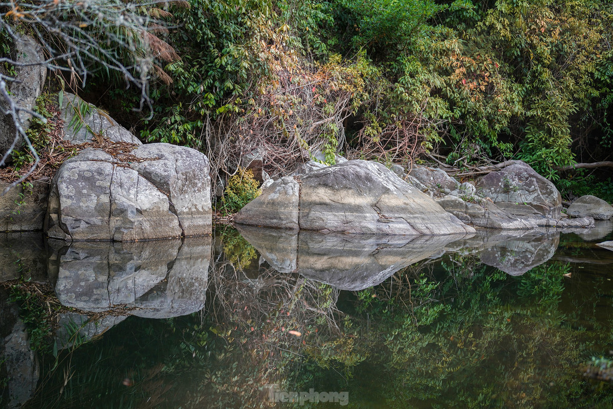 Lãng mạn suối Đá Bàn mùa khô hạn. Do là mùa khô nên mực nước xuống thấp, chính vì thế du khách có nhiều không gian hơn trên các tảng đá.