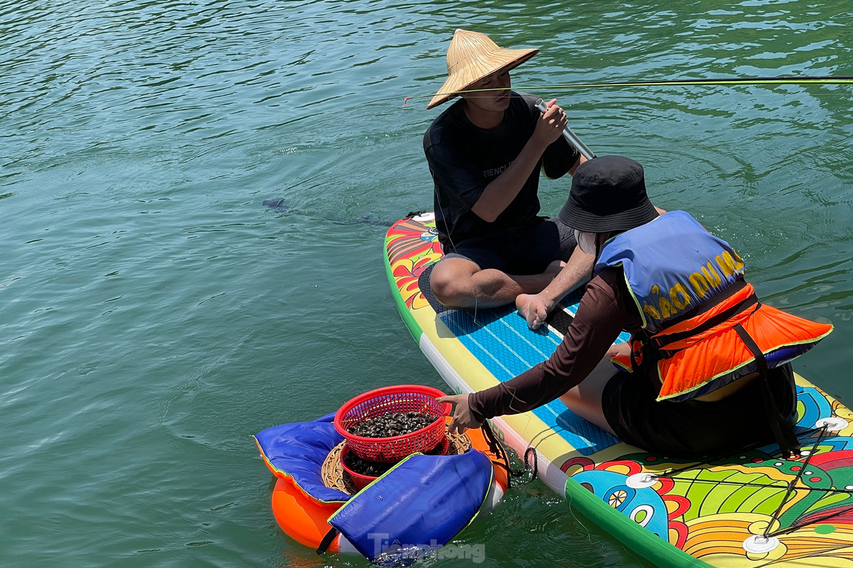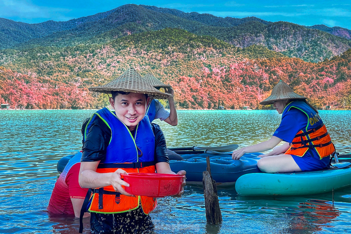 Độc đáo hơn chính là trải nghiệm bơi thuyền SUB đi mò hến. Phần chế biến món hến xúc bánh tráng sẽ được đội hỗ trợ trên đảo Du Mục thực hiện.