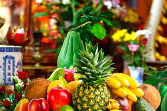 Hoa quả tươi là lễ vật quen thuộc, nhưng những loại có mùi quá gắt như mít, sầu riêng… lại không thích hợp. Bàn thờ cần sự thanh khiết, trang trọng, trong khi hương quá nồng dễ gây cảm giác khó chịu, làm mất đi sự trang nghiêm. Thay vào đó, nên chọn trái cây có mùi dịu nhẹ như chuối, cam, xoài… vừa tinh tế vừa thể hiện lòng thành.