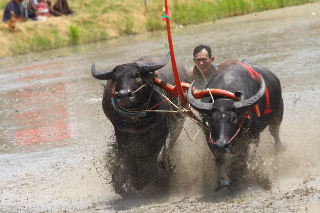 Những con trâu bình thường hiền lành, chậm chạp cần mẫn cày cấy trên đồng ruộng thì nay hóa những chiến binh dũng mãnh, lao mình đi như tên trên đường đua, cạnh tranh rất kịch tính cho ngôi vị vô địch.