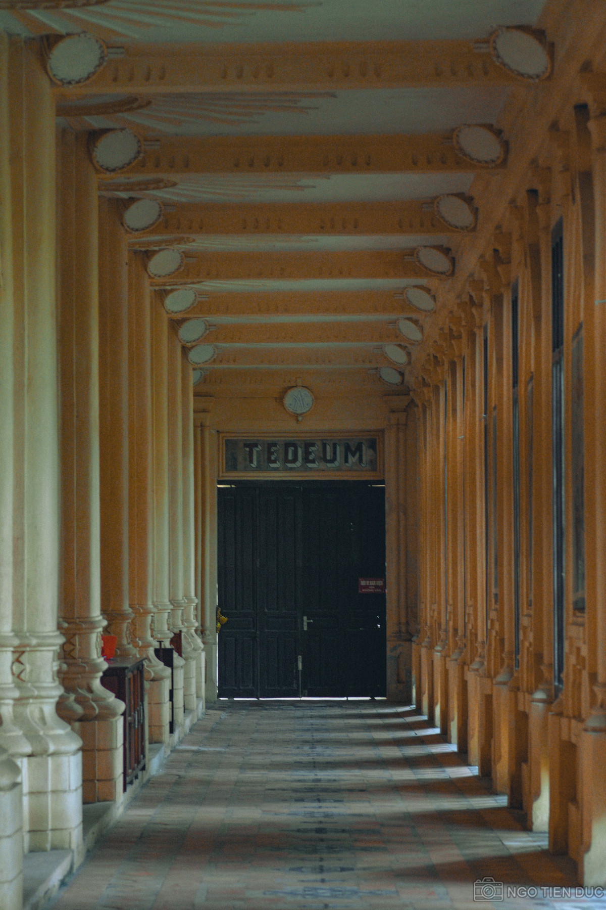 Dọc hai bên hành lang nhà thờ là các cột được trạm khắc rất tinh xảo, xung quanh được tô điểm bởi các bức họa Chúa, các thánh, làm tăng thêm vẻ tôn nghiêm, linh thiêng.