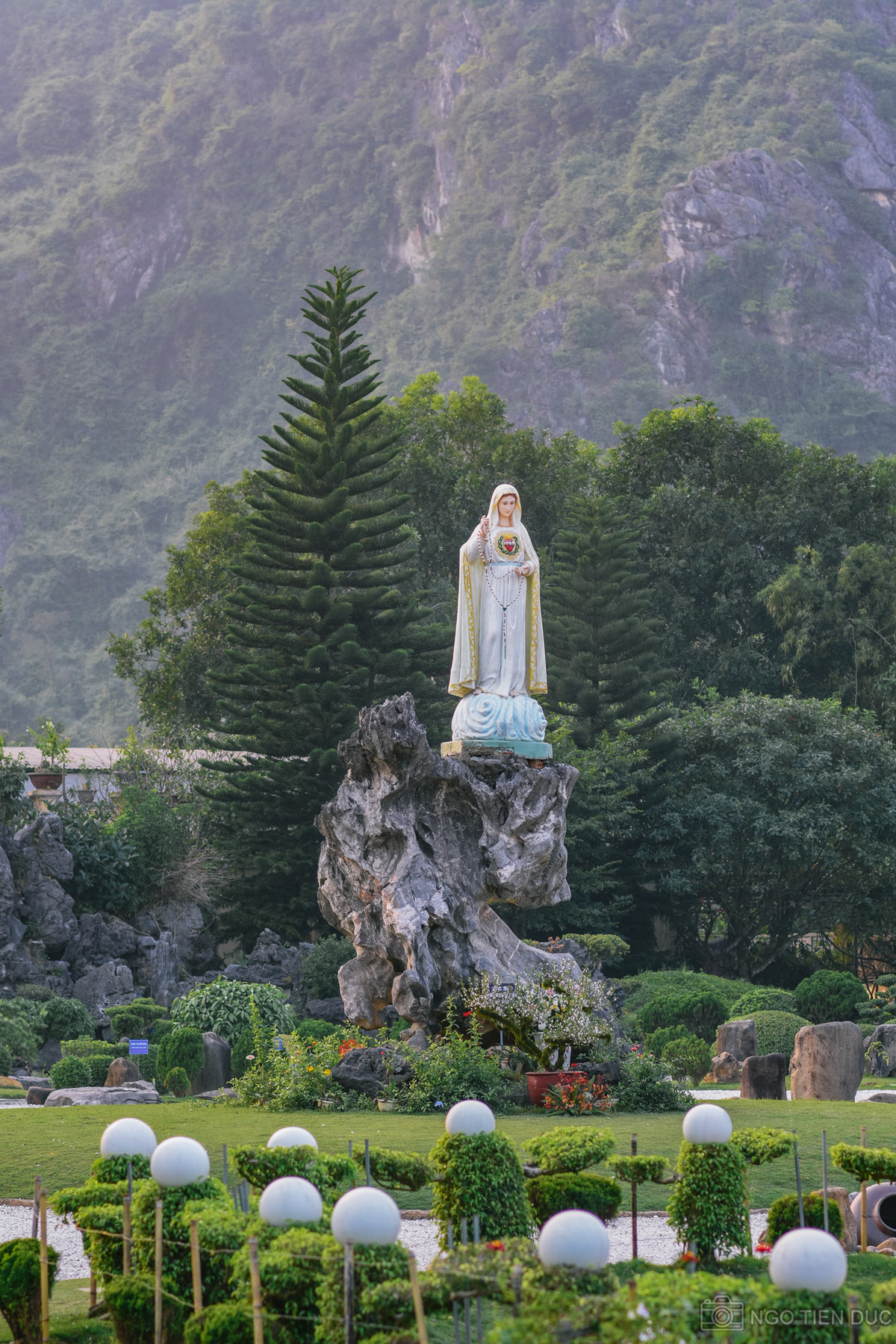 Ngoài nhà thờ, vườn cầu nguyện Fatima cũng là một điểm nhấn đặc biệt của Đan viện với hàng loạt tiểu cảnh, tượng Thánh, bãi trứng đá nhân tạo và giếng đá ong...