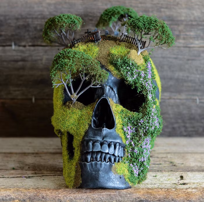 Những thế cây độc đáo được bố trí trên chiếc đầu lâu.