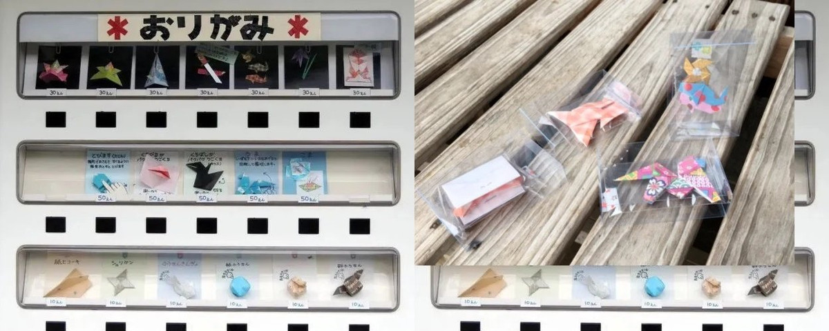 Nhật Bản có rất nhiều máy bán tự động kỳ lạ, trong đó máy bán đồ chơi giấy Origami ở tỉnh Ehime là một ví dụ điển hình. Trong máy có rất nhiều sản phẩm thủ công được gấp từ giấy, từ máy bay giấy, ếch giấy cho tới hạc giấy. Có 3 mức giá cho người mua lựa chọn: 10 - 30 - 50 yên (tương đương 2.000 - 6.000 - 10.000 đồng). Không chỉ trẻ em mà nhiều du khách đến Nhật Bản cũng rất thích thú trước chiếc máy tự động sáng tạo này.