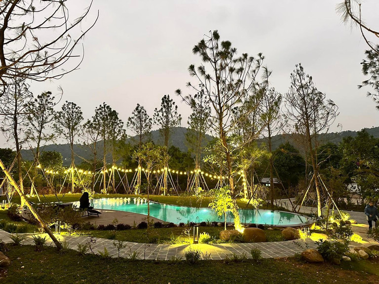 Biệt thự gỗ giữa đồi thông ở Sóc Sơn của ca sĩ Trọng Tấn đẹp như cổ tích khiến khách tới chơi đều phải trầm trồ.