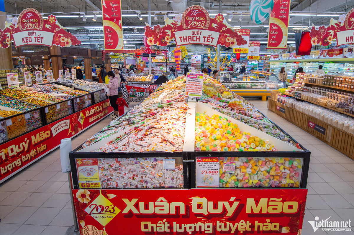 Dù còn hơn một tháng mới đến Tết Nguyên đán 2023, không khí xuân đã tràn ngập siêu thị tại Hà Nội. Nhiều người dân rục rịch đi mua sắm Tết, có gia đình chi hơn 7 triệu đồng cho các loại bánh kẹo.