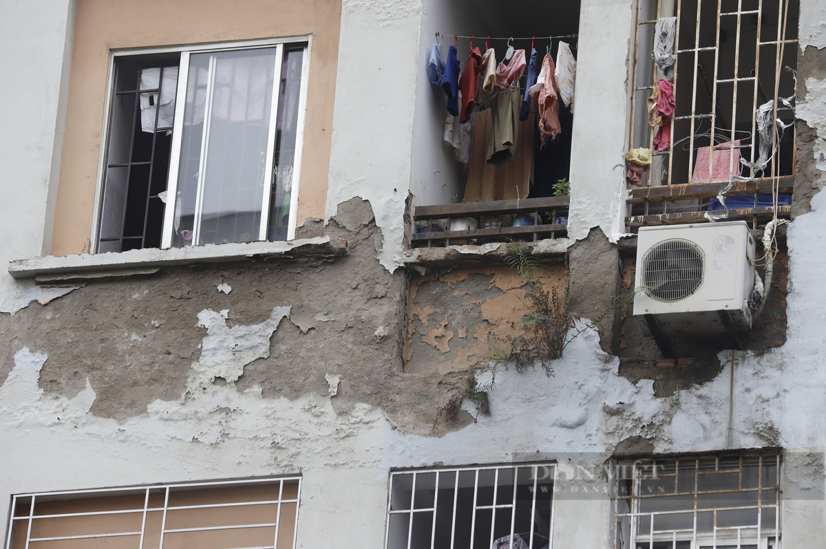 Hiện rất nhiều hạng mục phụ trợ ở một số tòa nhà đã bị xuống cấp nghiêm trọng, bậc cầu thang bị nứt gãy, nhiều mảng tường nhà bong tróc, xuất hiện những vết nứt kéo dài.