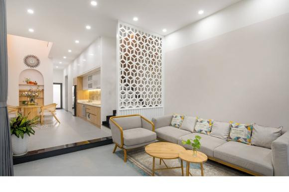 Ngôi nhà 2 tầng này nằm ở Tam Kỳ, tỉnh Quảng Nam. Dù là nhà phố nhưng không gian sống, cây xanh vẫn luôn hiện hữu và tràn ngập ánh sáng.