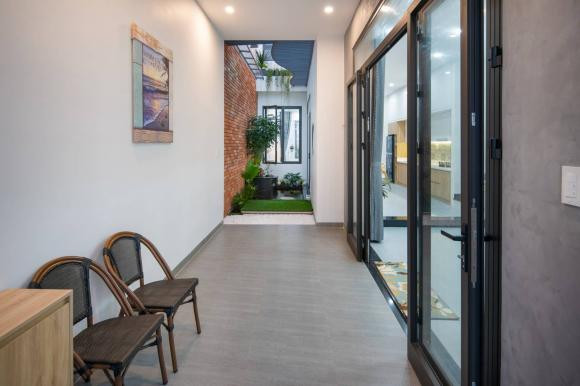 Diện tích mặt đất của ngôi nhà là 7x22m. Đây là món quà vợ chồng con gái tặng cha mẹ nên rất chú trọng đến thiết kế mở, gần gũi với thiên nhiên. Bởi vậy, khi xây dựng, gia chủ đã dành đến 6m cho sân trước và 1m cho sân sau.