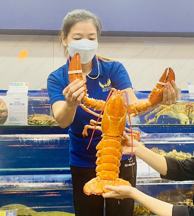 Mới đây, một cửa hàng hải sản ở đường Nguyễn Văn Linh, Quận 7, TP. Hồ Chí Minh đã phát hiện ra một con tôm hùm có màu vàng cam dài 55cm, nặng gần 2kg trong lô hàng nhập khẩu từ Canada về Việt Nam hôm 1/7.