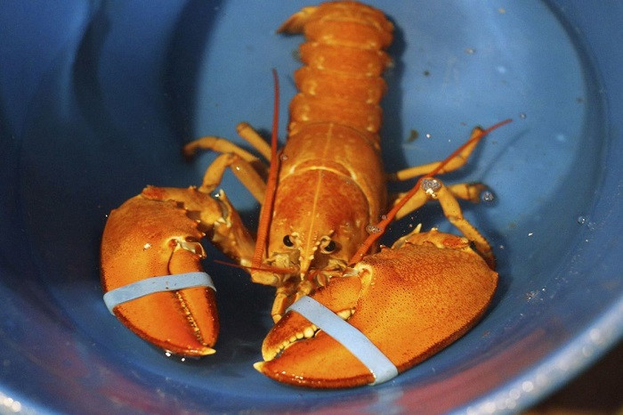 Con tôm hùm "đột biến" được nhập về Việt Nam có màu vàng cam.