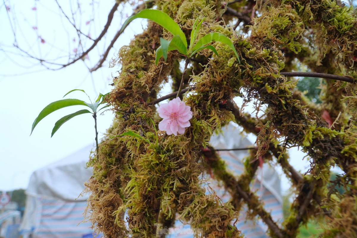 Ở phần gốc thân đào được phủ kín rong rêu tạo nên vẻ đẹp tự nhiên. Còn phần trên là ngọn, cành hoa nở màu sắc sặc sỡ.