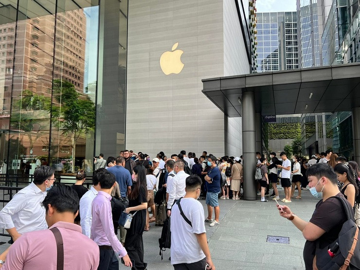 Dòng người xếp hàng mua iPhone 14 tại Singapore.