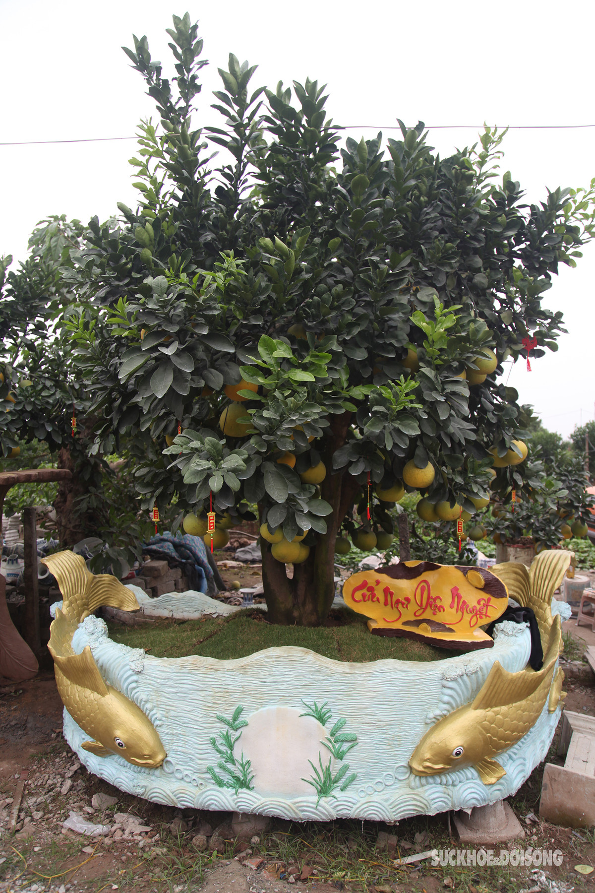 Anh Lý Văn Đức (Văn Giang, Hưng Yên) tạo ra chậu bưởi bằng xi măng có hình dáng các con vật như rồng, cá, trâu, ngựa... Đặc biệt trong vườn nổi lên chậu bưởi có tên gọi 'Vươn mình bay xa' có giá lên đến ba trăm triệu đồng.